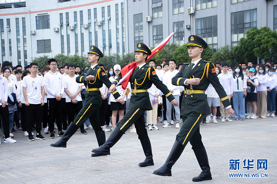 湖北大学“庆百年颂党恩升国旗暨党史学习教育微宣讲”活动现场。新华网发周均涛摄