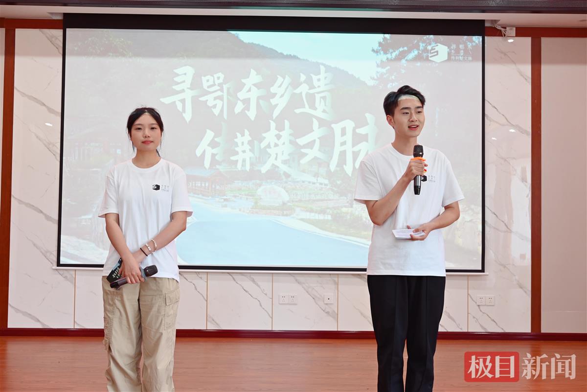 暑期社会实践团队成员金海、徐寓妍作题为《寻鄂东乡遗,传荆楚文脉——基于对麻城市乡村振兴调研分享》的微党课宣讲。以湖北大学艺术与设计学院连续7年组建“乡遗保护”社会实践团队为切口,从传统村落的守护者、乡村振兴的建设者、乡土文化的传播者三个身份,介绍了麻城市的非遗文化和乡土文化,展示了实践团队设计的茯苓窝特色农旅文创产品。团队成员徐寓妍表示,未来将继续通过系列微党课、非遗青年说、新媒体互动等方式,沉浸式体验并记录真实的乡村生活,以青年大学生的视角讲述乡村故事,让更多人爱上乡村、扎根乡村。