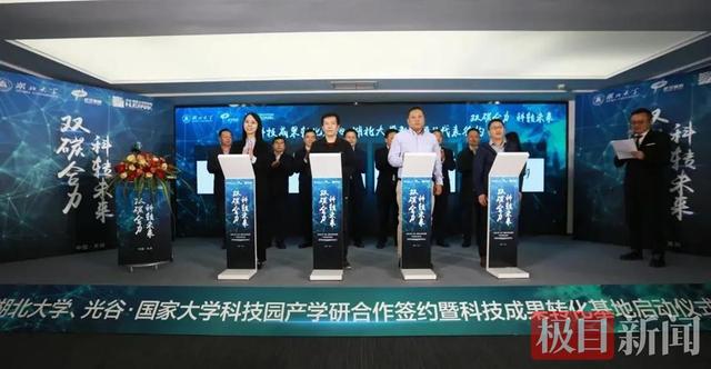 据介绍,湖北大学、光谷大学园将分别在对方场地设立成果转化基地,与日前成立的武汉高科·双碳产业示范园联动,打造具备政策法规运用、前沿技术判断、知识产权管理、科技成果评价、市场调研分析、法律协议谈判等能力的成熟平台,开拓一条科技成果转化新路子,助力早日实现“双碳”目标。