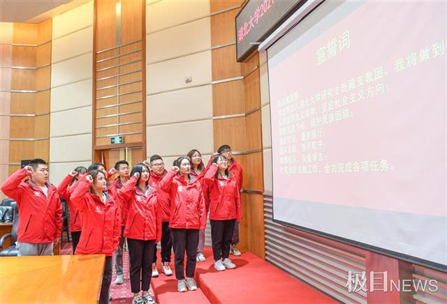 “我志愿加入湖北大学研究生赴藏支教团,弘扬爱国主义精神,坚定社会主义方向……”3月26日上午,湖北大学会议中心,12名研究生右拳紧握,郑重宣誓。
