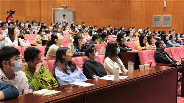 蒋晓平从自身实际出发,结合深入武汉抗疫一线采访报道的工作经历,通过讲述亲身经历的抗疫故事,将自己73天与武汉市金银潭医院医护人员并肩作战的抗疫经历,与自己在这个过程中最深刻的感受融合在一起,为在场师生传达作为一位媒体人最真实的抗疫视角和记者担当。