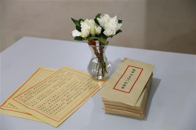 四年的朝夕相处,让学生如同孩子一般。学校宿管阿姨们为返校毕业生们写了一封特别的“家书”,在复古的信纸上有这样一句:“我在宿舍大厅的花盆里小心翼翼地养护着一小束栀子花,正如这四年来在一声又一声“阿姨”中用心地照顾你们。”