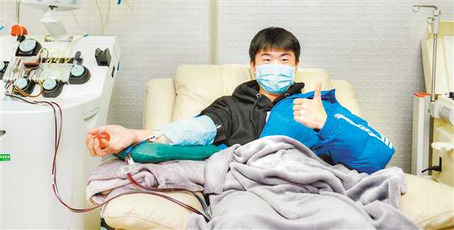 这是王齐第一次捐献血浆。“我怕痛,以前也没献过血。住院治疗时医护人员帮我很多,现在终于轮到我帮助更多人了,我也想尽一分力。”他有些腼腆地说。