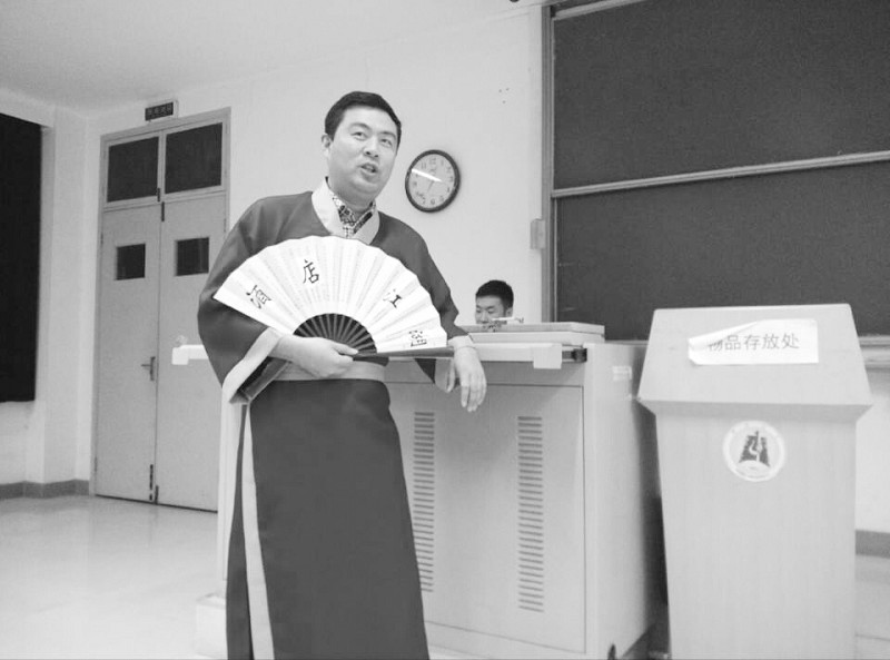 说起武侠小说《笑傲江湖》,你一定并不陌生,但你可知道酒店也有自己的江湖吗?昨日,湖北大学商学院老师赵亮道袍加身,手持写有酒店江湖,逐鹿中原的折扇出现在旅游管理专业的课堂上,讲授他的创意课——酒店江湖。课堂上,他说书论江湖,武侠形象亮相加技术体验,大受学生追捧。