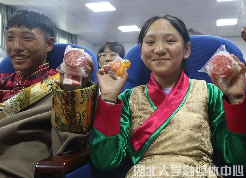 活动最后,山南市东辉中学的师生们品尝了由湖北大学附属中学从三千六百公里之外的武汉寄来的中秋月饼,每一块月饼都承载着两校之间对彼此的美好祝福。山南市东辉中学的师生们用藏语和汉语演唱藏族歌曲《一个妈妈的女儿》,歌声饱含了鄂藏两地之间的深厚情谊。