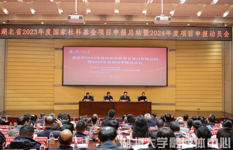 12月8日下午,湖北省2023年度国家社科基金项目申报总结暨2024年度项目申报动员会在湖北大学举行。湖北省委宣传部副部长蔡静峰总结2023年国家社科基金项目申报工作,动员部署2024年申报工作,湖北大学党委副书记祝欣出席会议并致辞。会前,湖北大学党委书记谢红星会见了蔡静峰一行。