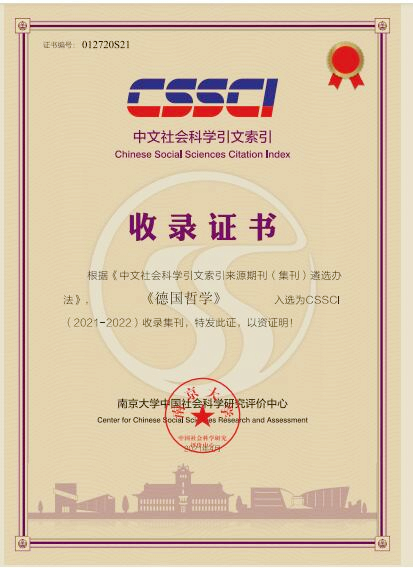 由湖北大学哲学学院主办的刊物《德国哲学》,近期被南京大学中国社会科学研究评价中心收录为CSSCI(2021-2022)来源集刊。这是《德国哲学》首入选CSSCI来源集刊。