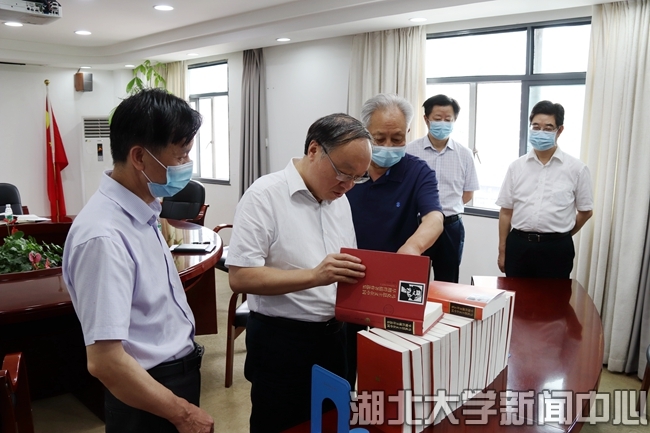 湖北大学高度重视《文集》编纂工作,6月24日,校长谢红星、副校长钱建国专程听取田子渝教授介绍编纂相关工作。谢红星指出,团队成员要在团队负责人的引领下以高度的使命感、责任感积极推进项目,确保项目高质量、高效率按期完成;马克思主义学院要将项目推进与人才培养紧密结合,在开展科学研究、完成项目的过程中不断提升团队成员特别是青年教师的政治素质、科研素养。谢红星表示,学校会汇集各方力量全力支持,务必确保文集编纂出版工作如期圆满完成。